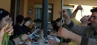 Gossos falderUs amb una dubtosa orientació sexual, cervesa per seguir amb el Vi negre, ratafia i tiberi de calçots, sense oblidar la llangUniseta, la "panxeta"(???) i els xorisets. Postres fets amb molt d'amor i carinyo però sense raspadura de llimona, confidencies i alguna canita al aire. Un...no m'importa perdre el tren per seguir xerrant amb vosaltres. Endivinalles..."tinc una dent i faig correr a tota la gent"."Una senyora..."...mmm, no el recordo,...però se que sempre nava molla. Escura que escura el got de salsa, Anna Maria! L'any que ve n'hauras de preparar un xic mes!...encara que en se d'alguns que mai dirien prou. L'all i oli que tant fa remugar a l'Albert, pero que sempre se n'acaba sortint... Un piset acabat d'estrenar i una molt bona noticia: t'enim un profe nou al Ripolles!